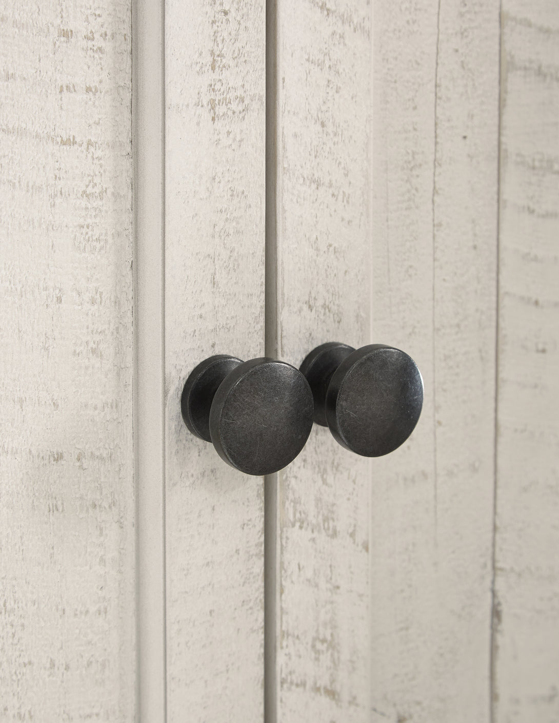 - Two-tone distressed finish: weathered grey top with vintage white base