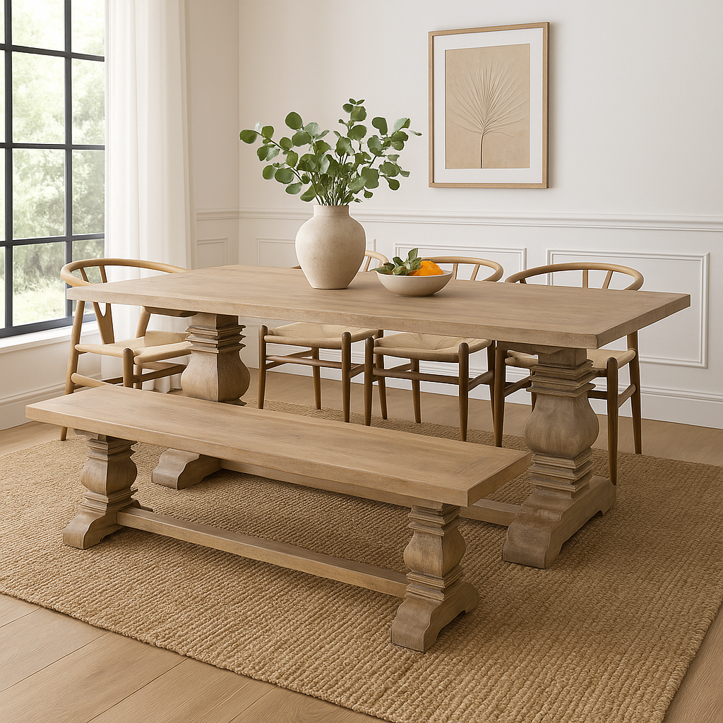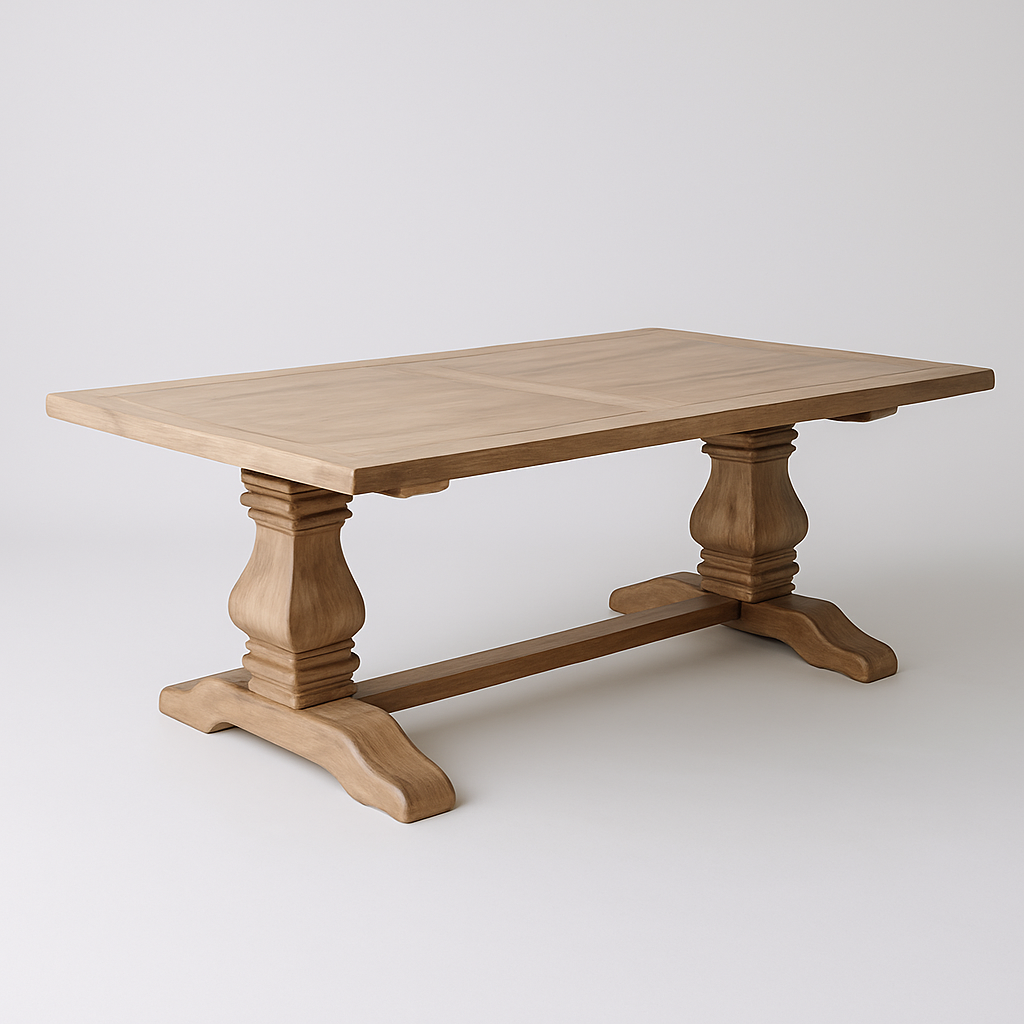 The classic double pedestal base not only adds visual appeal but also ensures rock-solid stability. Its generous proportions are perfect for large family gatherings or entertaining guests, with seating capacity for 6 to 12 people depending on the size selected.