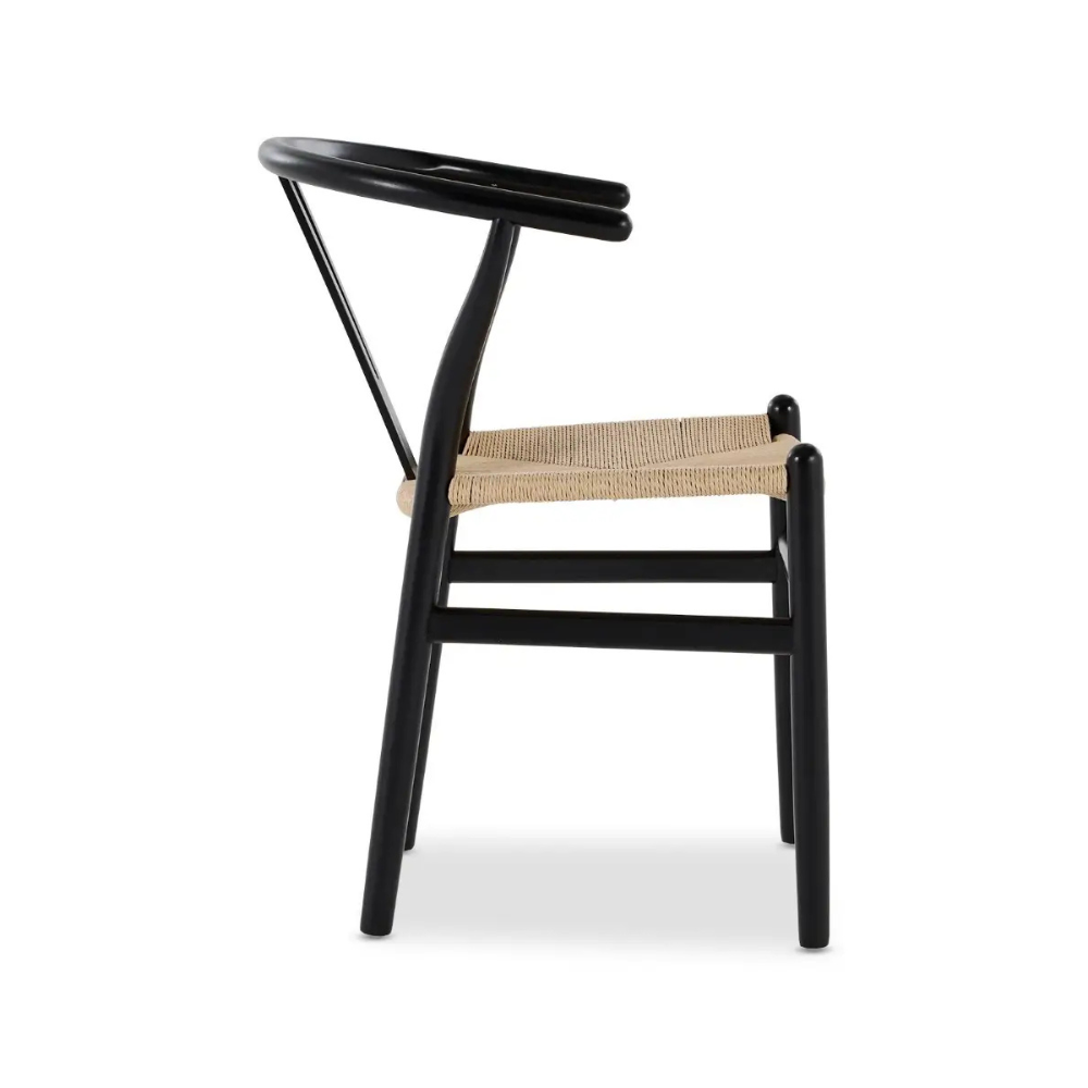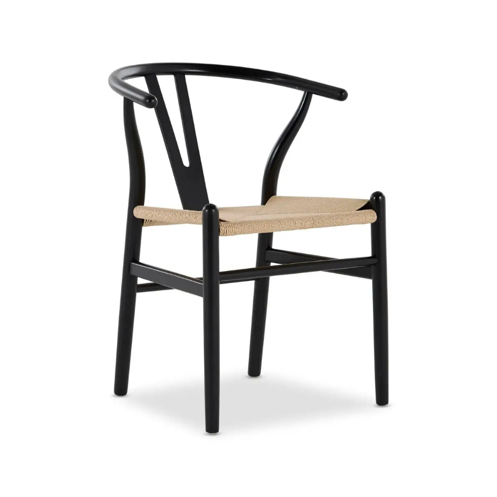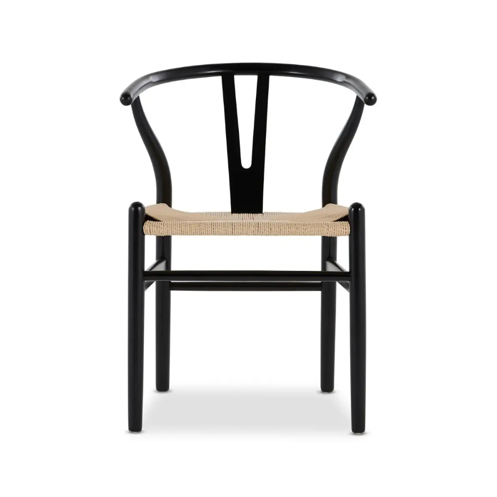 Bring iconic style to your interior with the Wishbone Chair - Black, crafted from solid timber in a matte black finish. This elegant piece features a hand-woven natural cord seat and the distinctive Y-back silhouette for which this design is world-renowned.