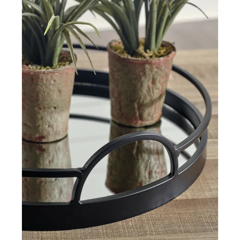 Elevate your home styling with the Adria Round Tray. Made with a black metal frame and mirrored glass base, it’s a sleek, functional piece for any contemporary space.