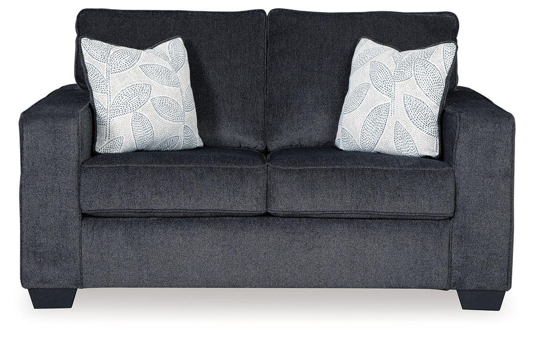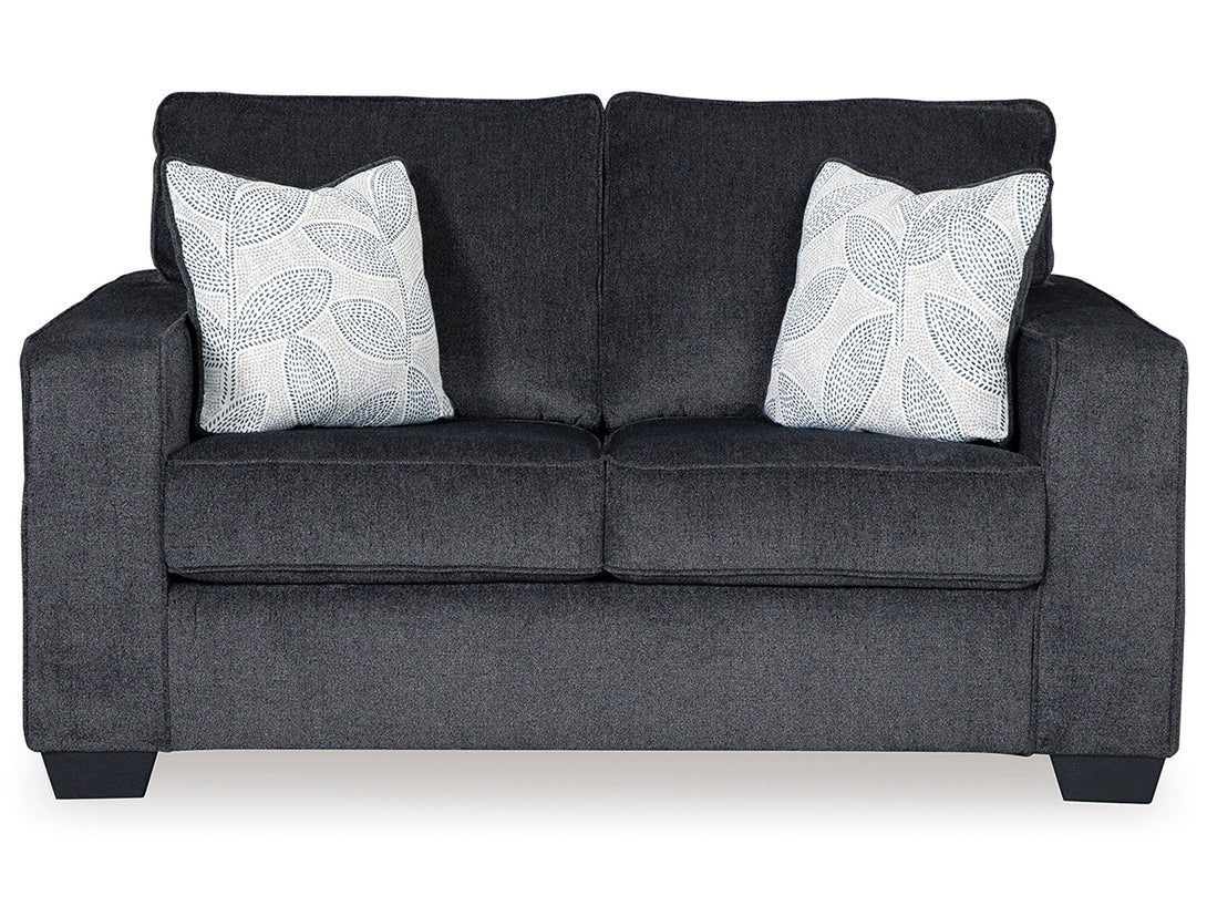 If style is the question, the Altari sofa is the answer. Featuring clean lines, sleek track arms, and chenille-feel upholstery, this loveseat combines a modern profile with plush comfort. Complete with two decorative accent pillows, it’s a versatile piece that suits a wide range of interiors.