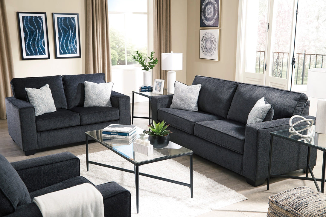 If style is the question, the Altari 3+2 sofa pair is the answer. With clean lines, sleek track arms and chenille-feel upholstery, this set blends contemporary looks with plush comfort. Each sofa includes understated floral accent pillows for a fresh, versatile finish.