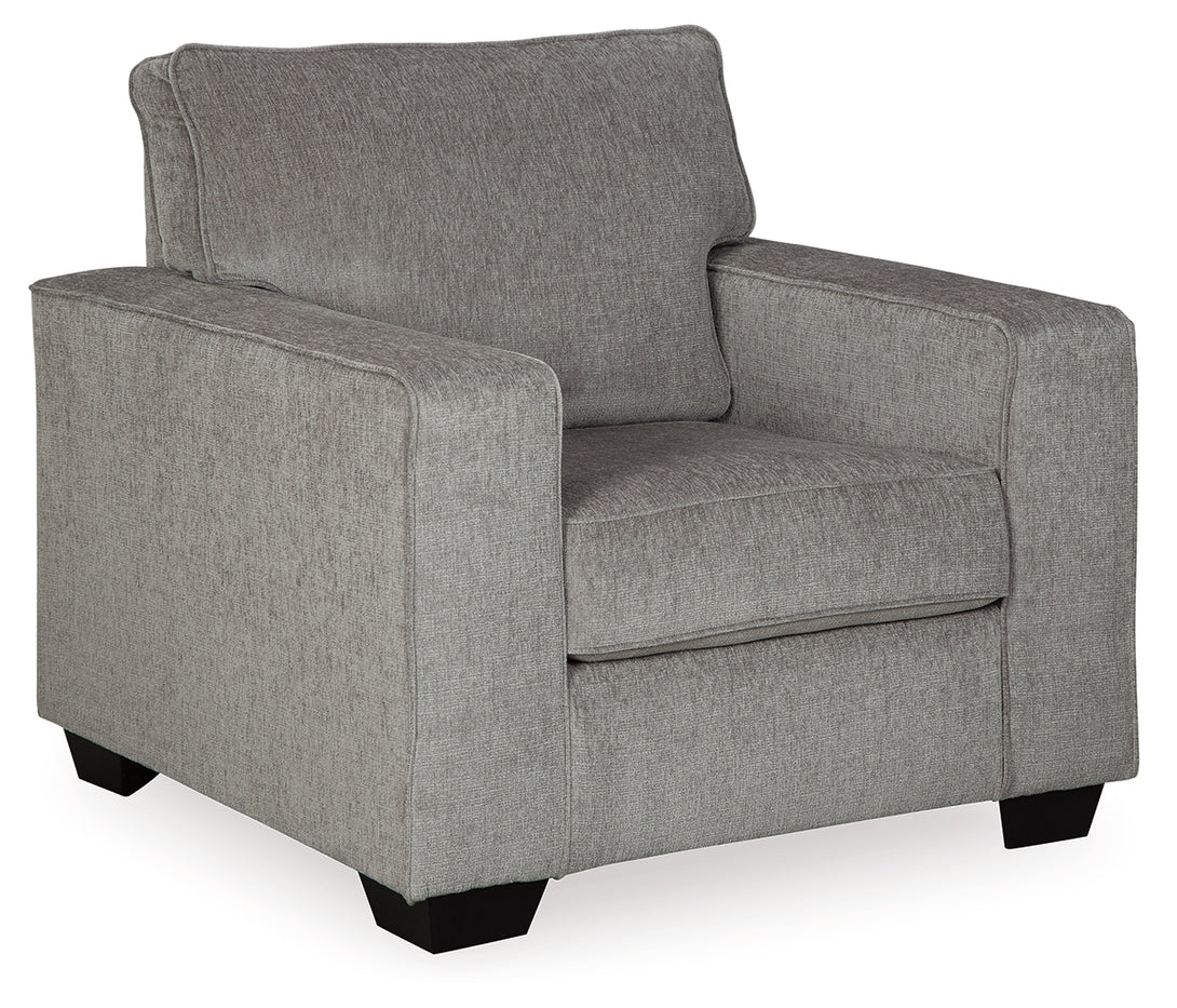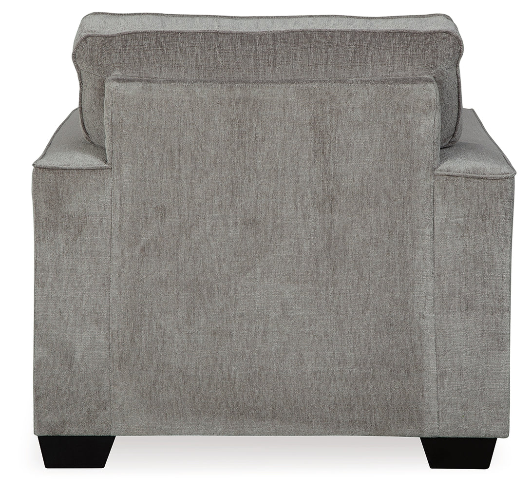 The Altari armchair offers the perfect blend of modern style and everyday comfort. With its sleek track arms, clean lines, and chenille-feel fabric in versatile Alloy, this chair is designed to complement a wide range of interiors. Plush cushioning ensures comfort, while durable construction provides lasting quality for your home.