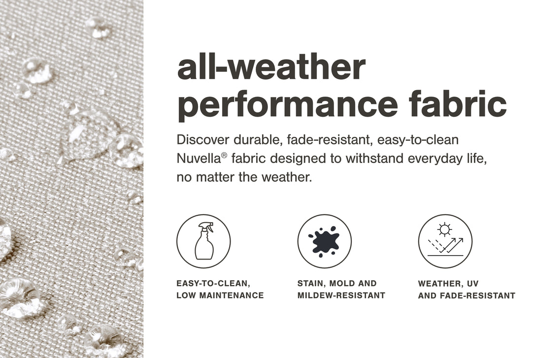 Crafted with all-weather resin wicker woven over a rust-free aluminium frame, the Brook Ranch set is built to withstand Australia’s harsh outdoor conditions. The plush cushions are wrapped in solution-dyed Nuvella+™ fabric—renowned for its UV resistance and cleanability. Whether you're soaking up summer sun or relaxing with a warm drink in winter, this setting ensures comfort all year round.