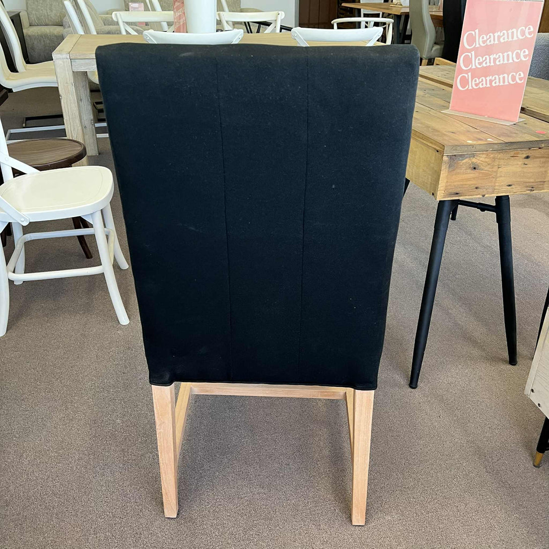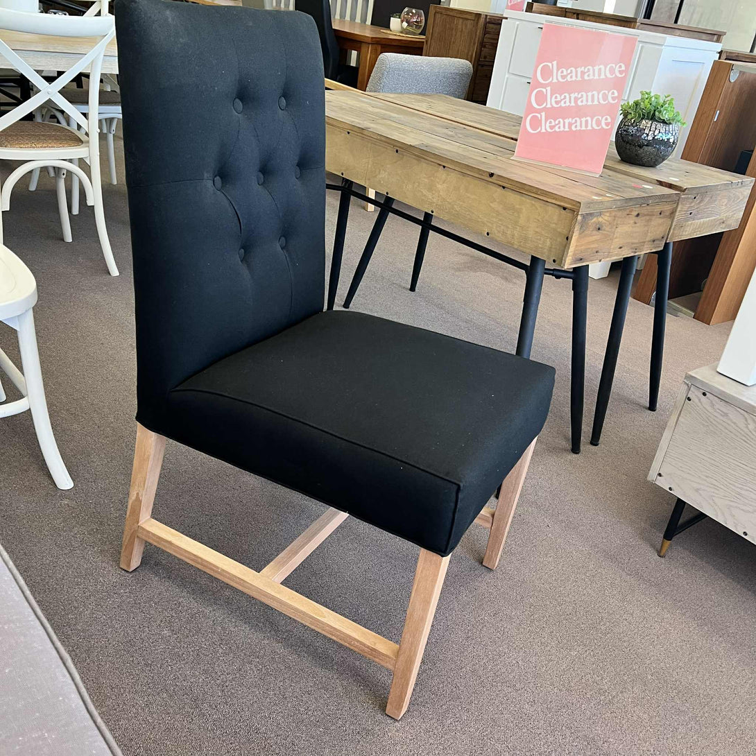 Upholstered in smooth black fabric and supported by a solid hardwood frame in a natural finish, this chair provides a perfect blend of classic charm and modern simplicity. Ideal for dining rooms, cafes, or accent seating.