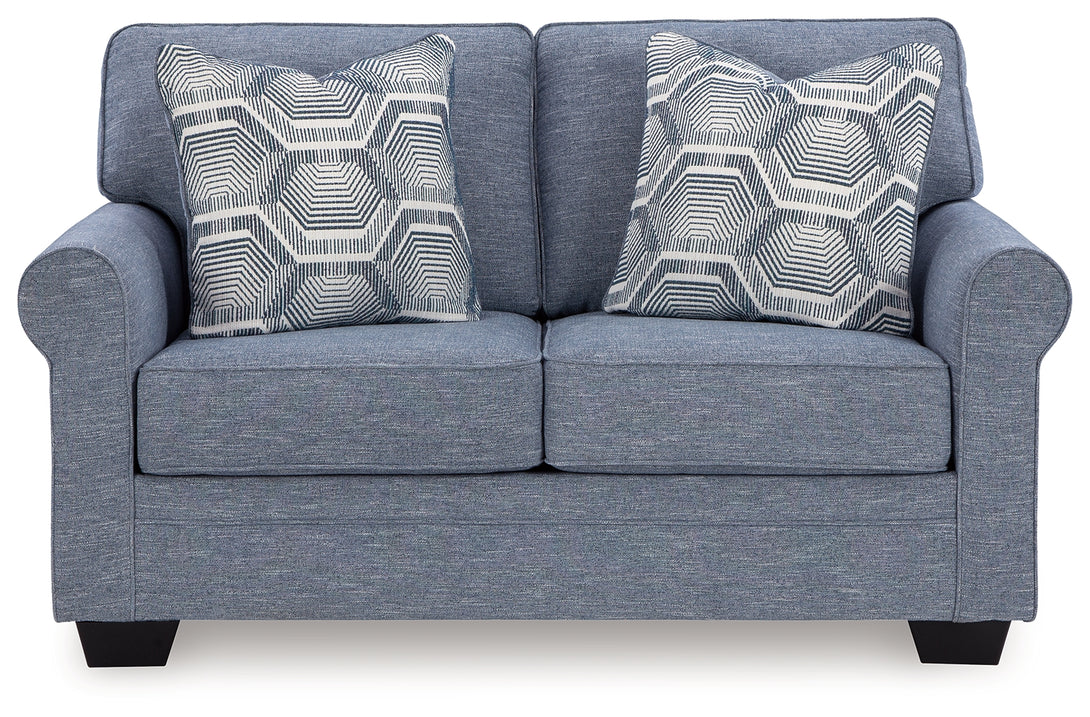 Classic rolled arms with a denim-inspired hue for timeless appeal