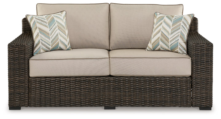 Who says the great outdoors isn’t made for luxury living? The Coastline Bay sofa with cushion offers all the high-end design, plush comfort and durability you could ask for, and then some. Its all-weather, rust-proof aluminum frame provides the easy-breezy wicker look you love without the high maintenance. Rest assured, the high-performing Nuvella® fabric covering the cushions and throw pillows is made to stand up to the elements.