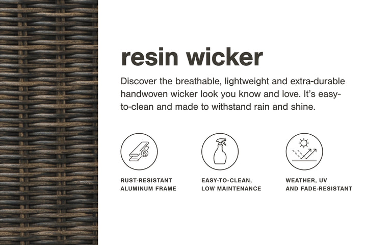 • All-weather resin wicker handwoven over rust-free aluminum frame