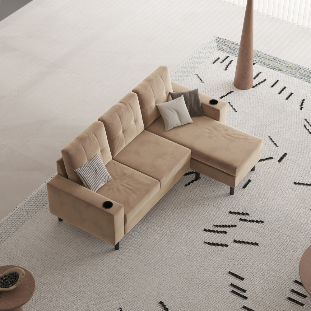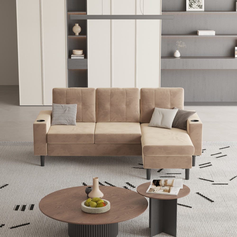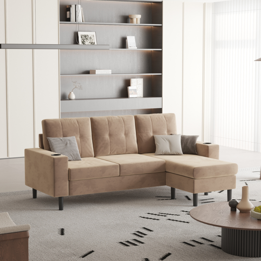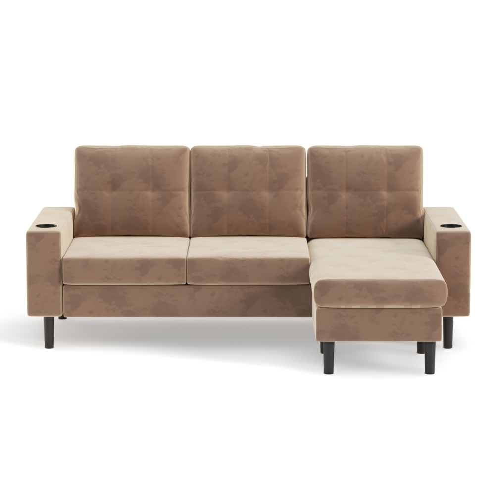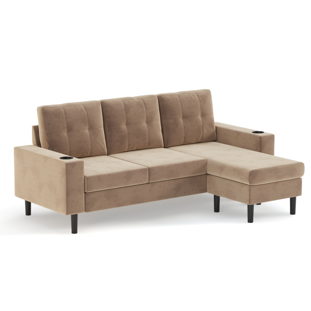 Cosy Cove 3 Seater Sofa with Reversible Chaise – Khaki Brown
