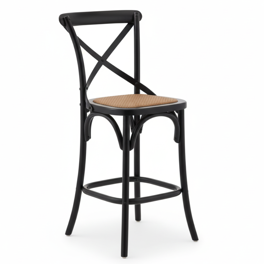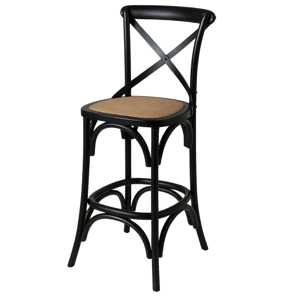 Stylish and enduring, the Cross Back Bar Stool – Black adds a touch of refined sophistication to your dining or bar area. Expertly crafted from solid hardwoods, this stool features the iconic curved crossback design, elegantly contoured legs, and a deep black painted finish that complements both classic and contemporary interiors.