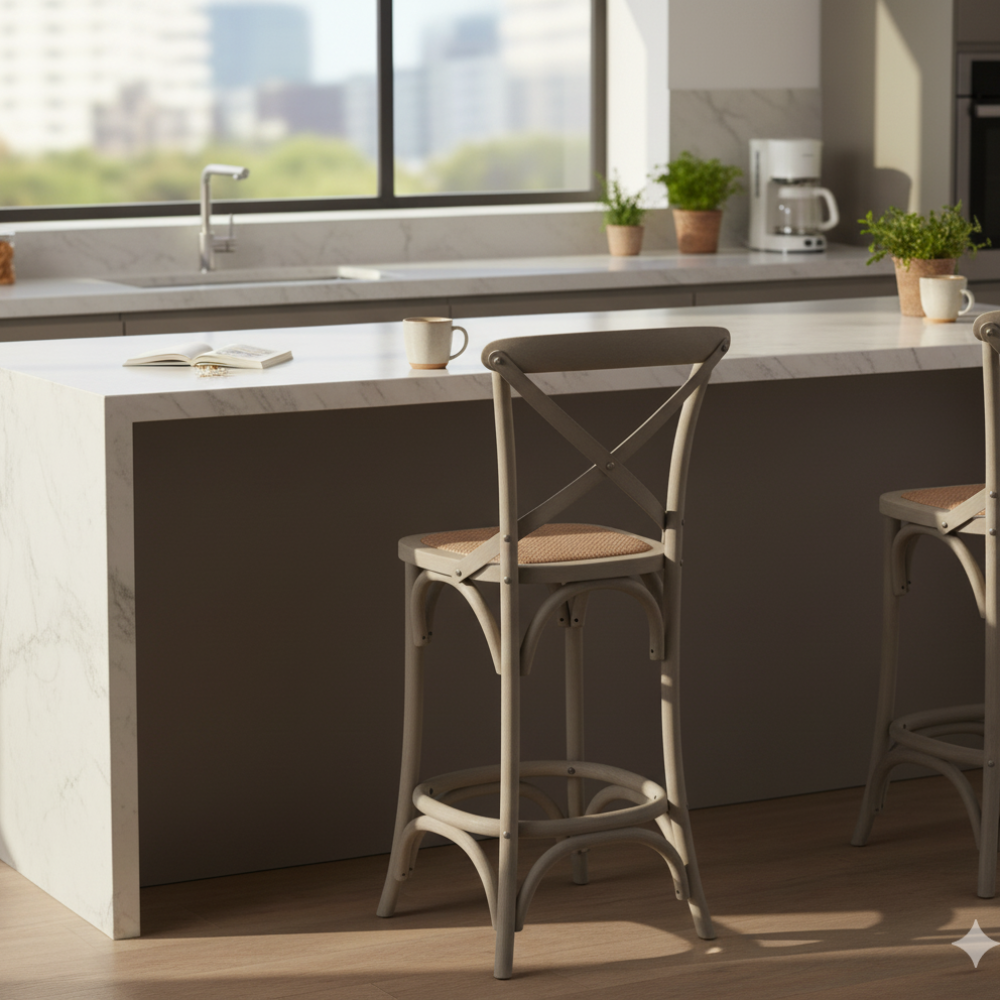 Elegant and versatile, the Cross Back Bar Stool – Brown/Grey brings rustic sophistication and practicality to any interior. Expertly crafted from solid hardwoods, it features the signature curved crossback design, contoured legs, and a hand-finished grey wash that complements modern, coastal, and country-style spaces.