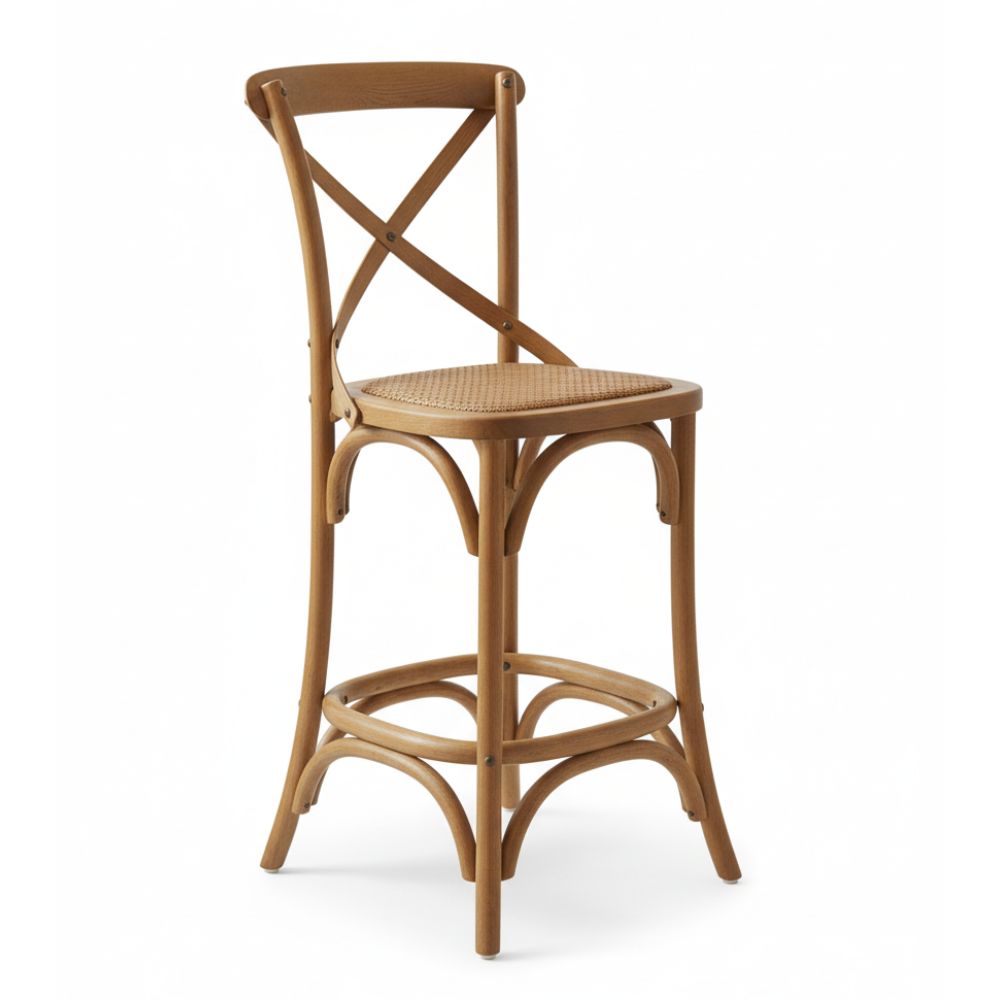 Charming and timeless, the Cross Back Bar Stool captures the essence of classic French country style. Crafted from solid hardwoods, it showcases a beautifully curved crossback design, gently tapered legs, and a warm natural finish that complements any interior decor.