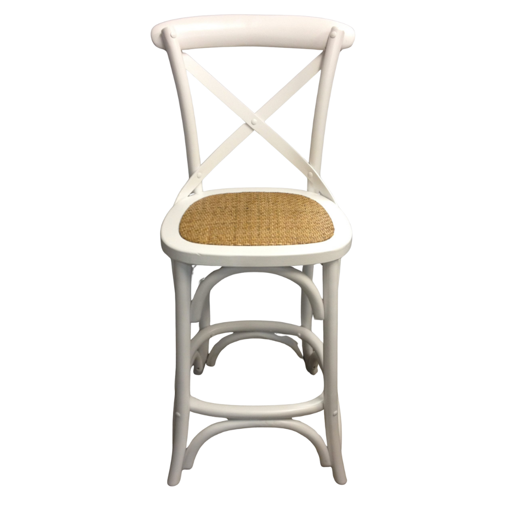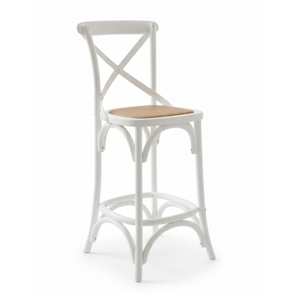 Elegant and versatile, the Cross Back Bar Stool – White brings a fresh coastal and French-inspired charm to your kitchen or bar area. Crafted from solid hardwoods, it features the signature curved crossback design, gently tapered legs, and a smooth painted white finish that brightens any interior space.