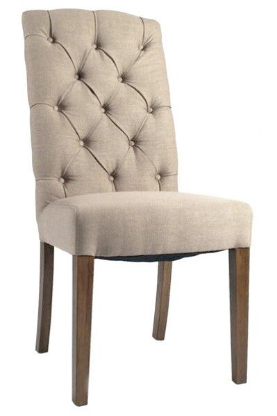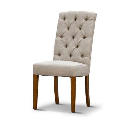 Elevate your dining space with the refined elegance of the upholstered Foxy Chair in Flaxen. This high-back dining chair features soft flaxen fabric upholstery with subtle button detailing for a sophisticated touch. Built from solid timber, the chair is not only visually appealing but also exceptionally durable—perfect for everyday dining or entertaining guests.