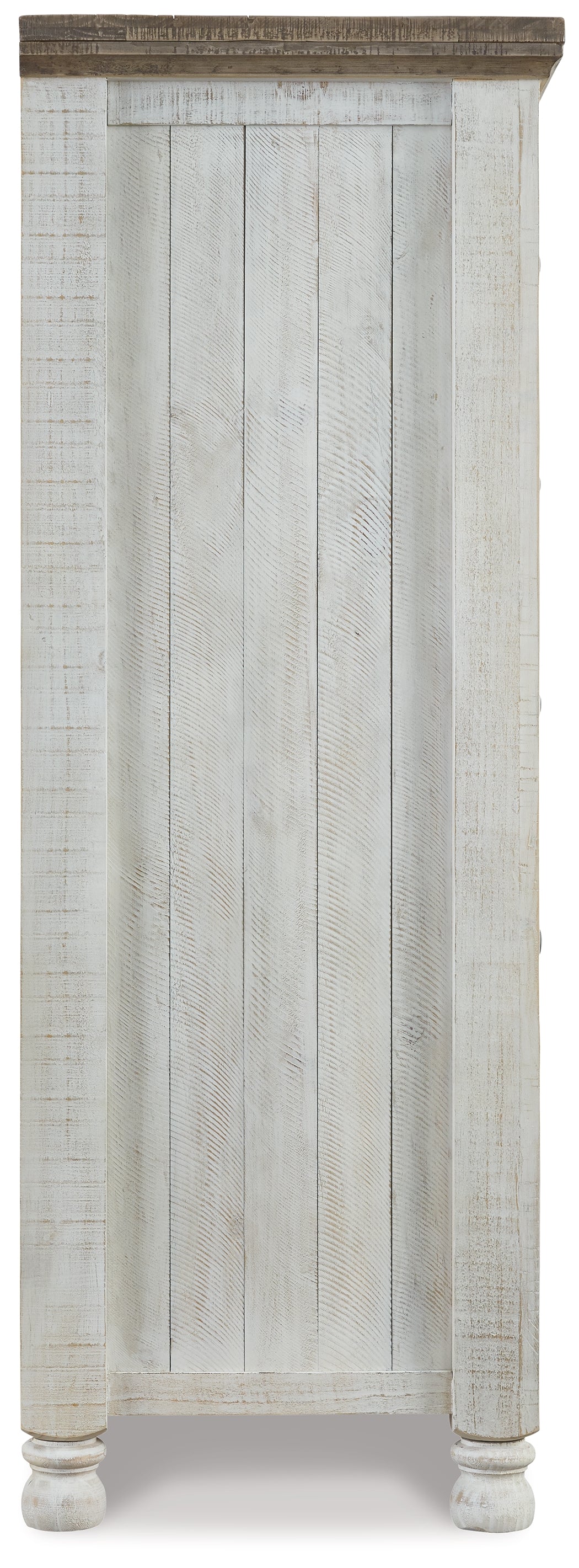 Bring timeless country charm and sturdy craftsmanship into your home with the Havalance Tallboy Chest. Inspired by classic American farmhouse style, this tall chest features a distressed two-tone finish—weathered grey on top and vintage white on the base. Its substantial build showcases raised drawer fronts, turned post accents, and thick crown moulding for an elevated rustic look.