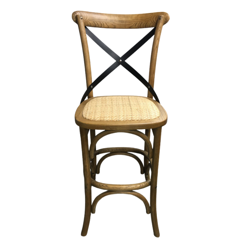 Enhance your kitchen or bar area with the timeless appeal of the Industrial Crossback Counter Chair - Natural. Combining rustic warmth and industrial charm, this beautifully crafted stool is made from solid hardwood with a natural finish, complemented by a metal crossback for added character and stability.