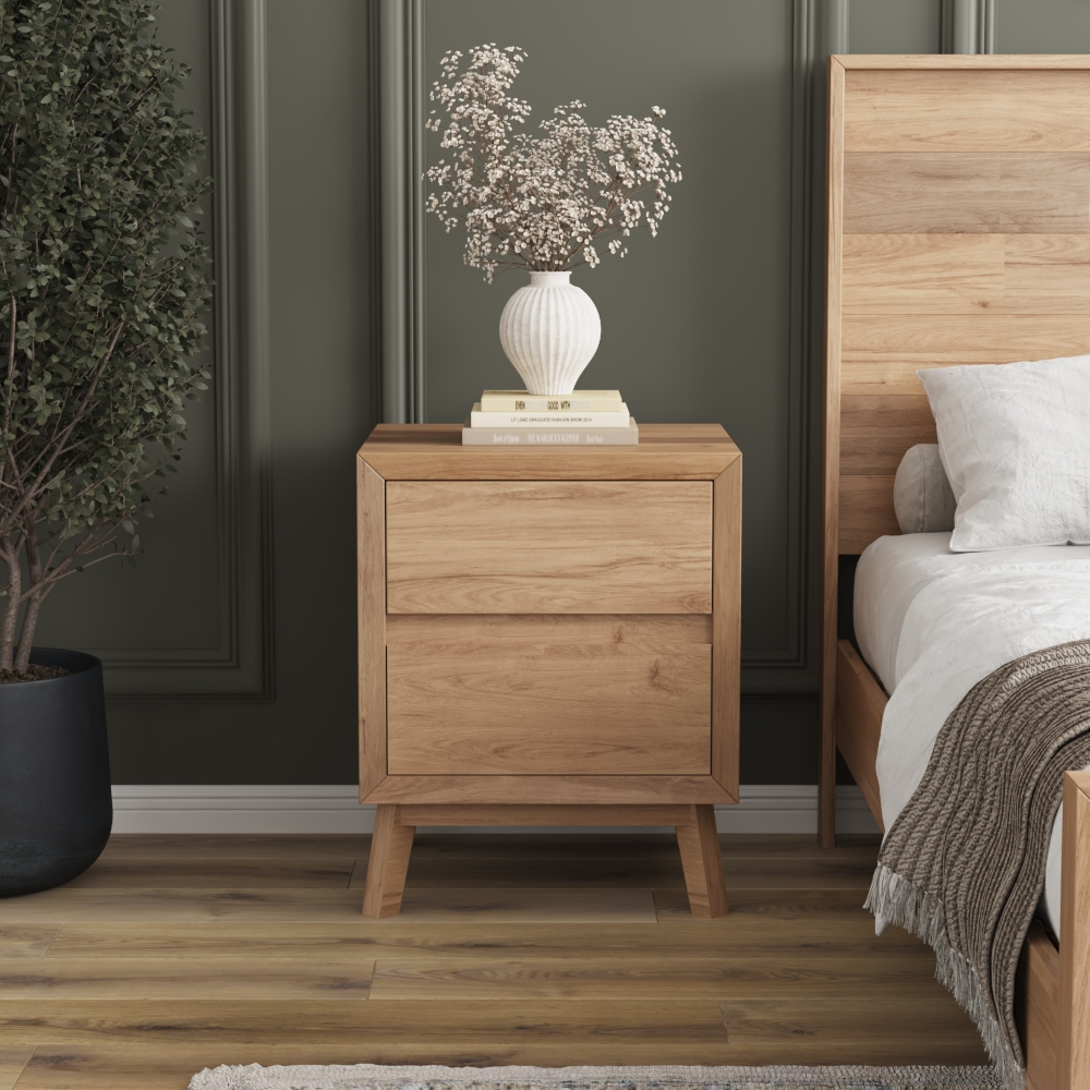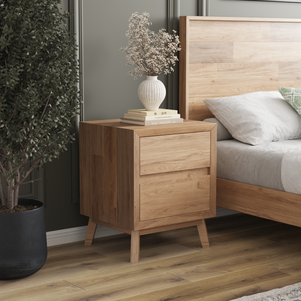 The InStyle 45 Bedside Table is crafted from solid Australian Mountain Ash hardwood timber, finished in a natural color that showcases the unique grain and character of the wood. Designed for versatility, this bedside table is a stylish and practical addition to any bedroom.