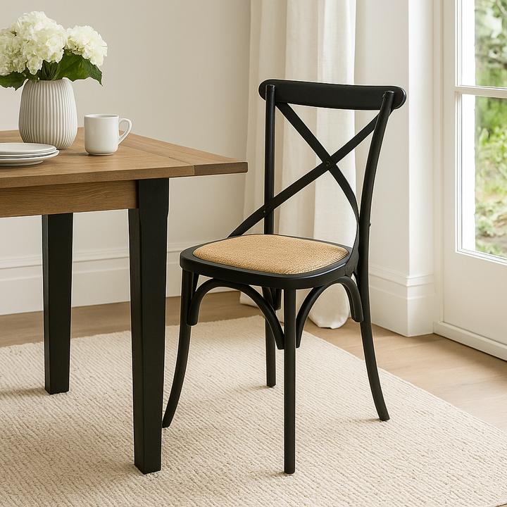 The InStyle Cross Back Chair is beautifully crafted from premium hardwood Teak timber and finished in a sleek Black tone. Combining comfort and durability, this chair is perfect for both modern Farmhouse, classic Hampton or Coastal settings.