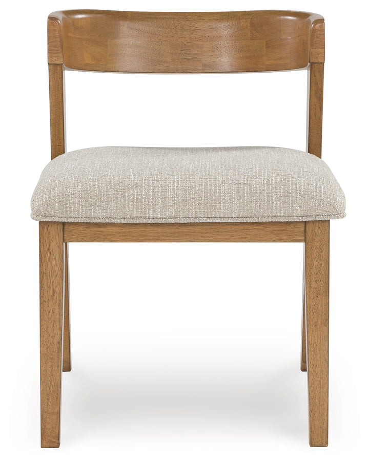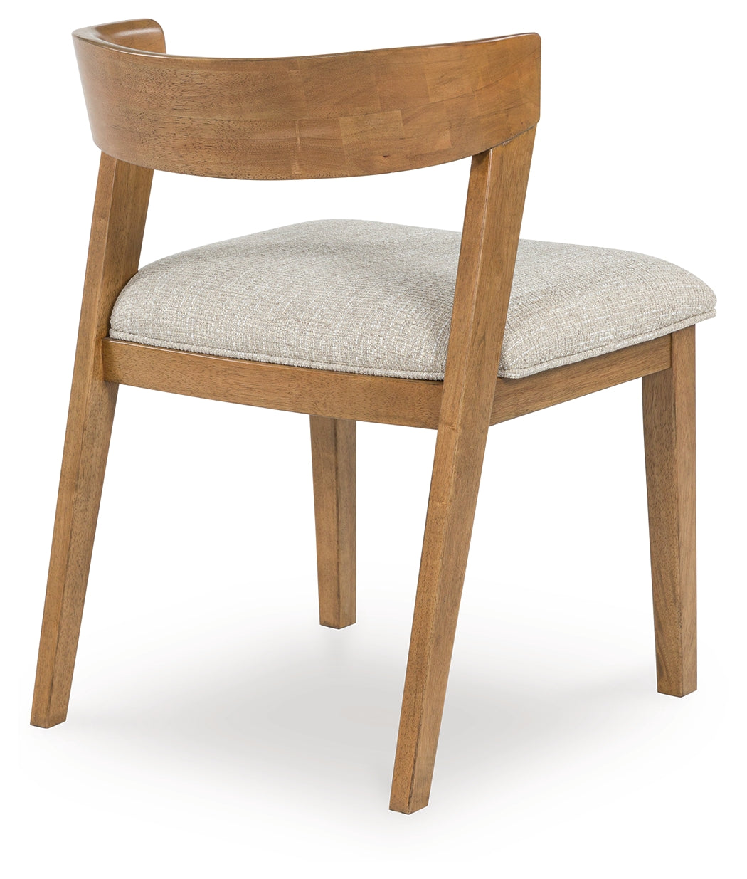 The solid timber frame in a light brown finish contrasts beautifully with the grey upholstered seat. Whether for daily meals or long gatherings, this generously sized chair supports style and comfort alike.