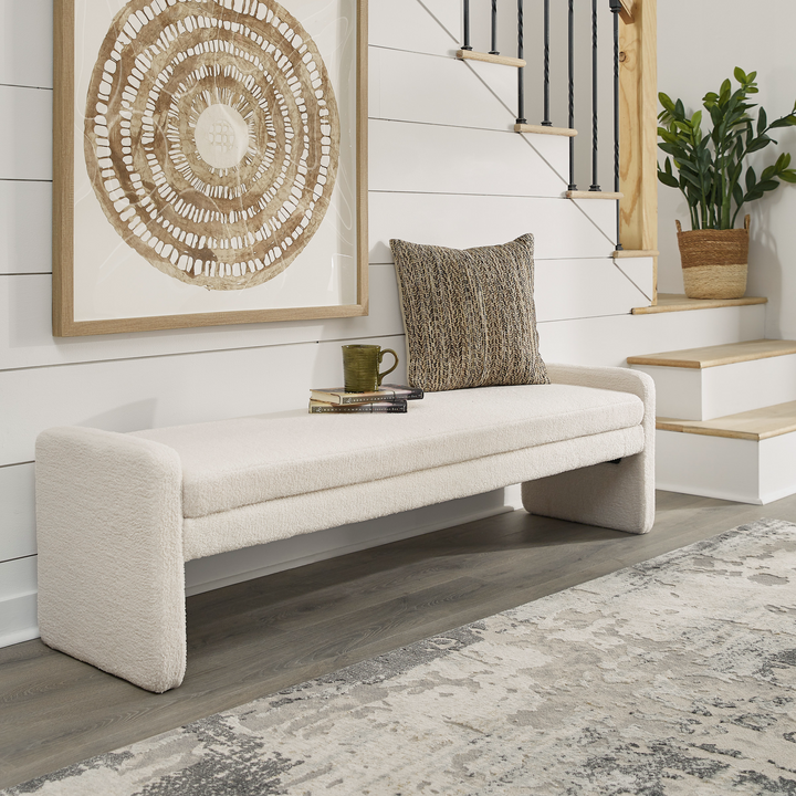 Craft a cozy yet high-style atmosphere with the Lambertson Accent Bench. Upholstered in soft faux shearling polyester, this bench delivers comfort with a modern edge. Its clean lines and rounded silhouette make it a perfect addition to any space—from a welcoming entryway to the foot of your bed.
