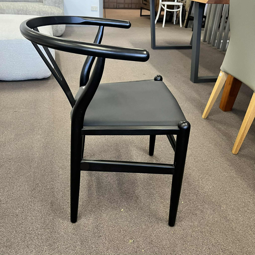 Bring sleek sophistication to your dining space with the Lennox Wishbone Dining Chair. Crafted with a sculpted solid wood frame and a comfortable black PU padded seat, it offers the perfect balance of timeless design and everyday durability — built to last.