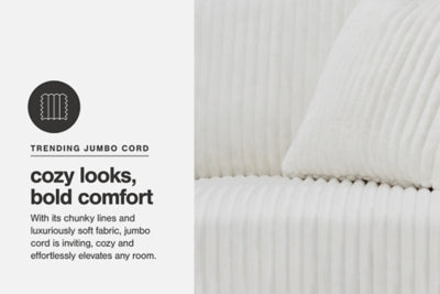 Plush, contemporary and built for real living — the Lindyn 2-Piece Modular Loveseat with Chaise offers deep seating and luxurious comfort wrapped in ultra-soft jumbo cord upholstery. The warm ivory tone adds rich texture and a relaxed modern aesthetic, making it a stunning centrepiece for any living room.