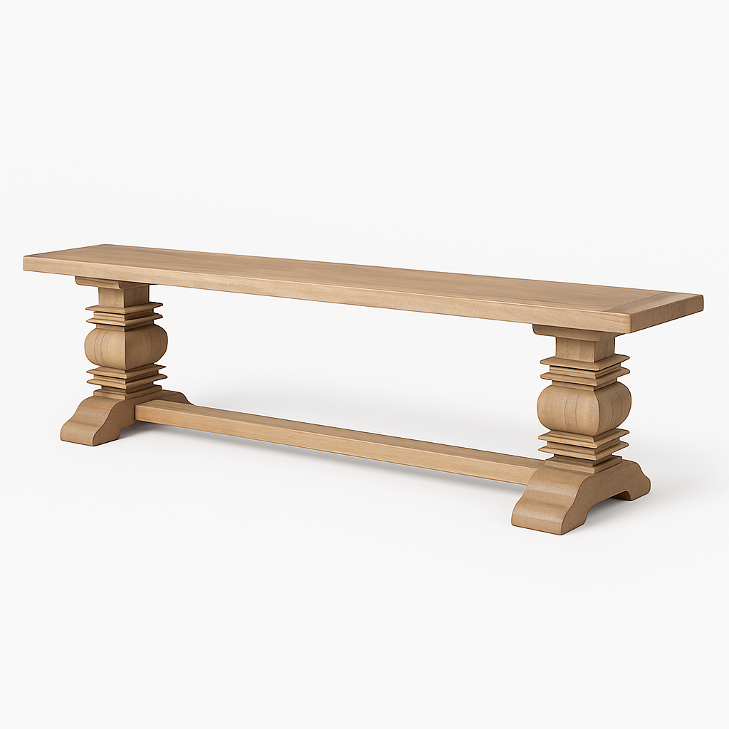 Each bench features a solid pedestal base, reflecting the same robust craftsmanship and timeless charm as the matching dining table. With a smooth, natural finish, the Mjolner Bench Seat is built to last and ideal for family dining or entertaining guests.