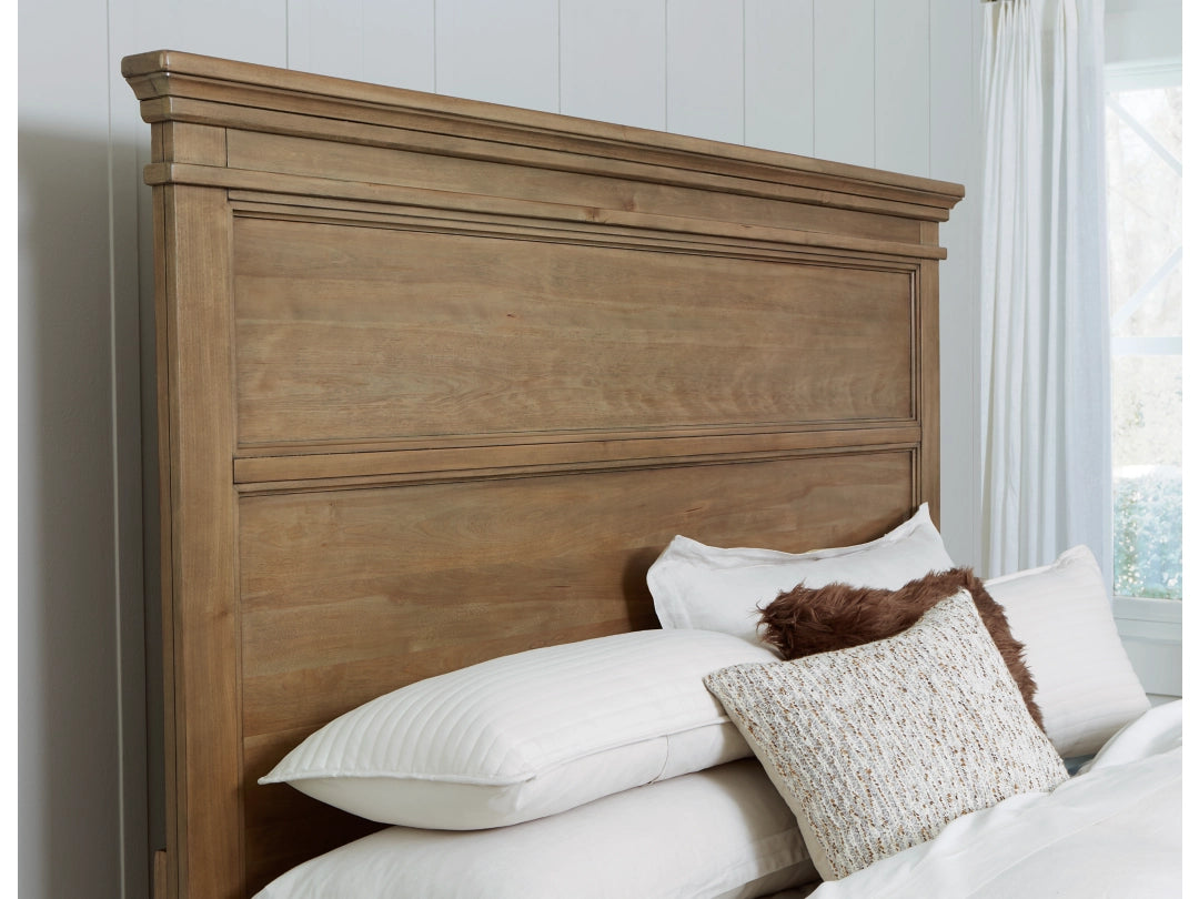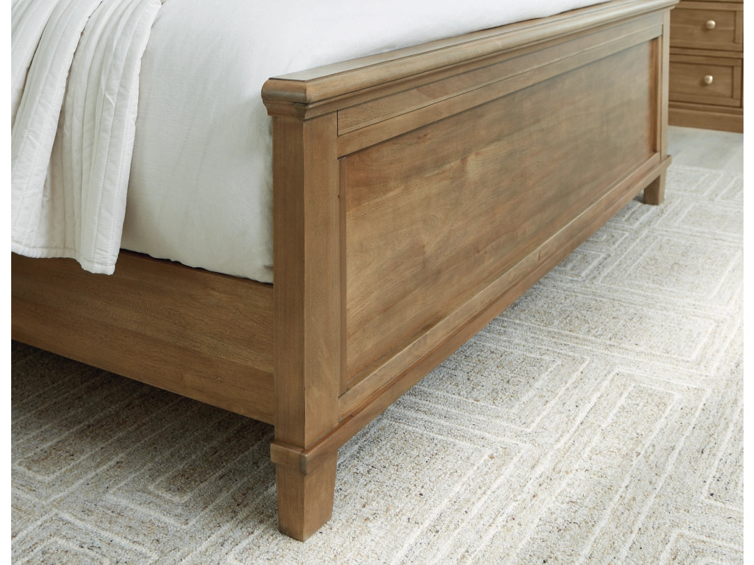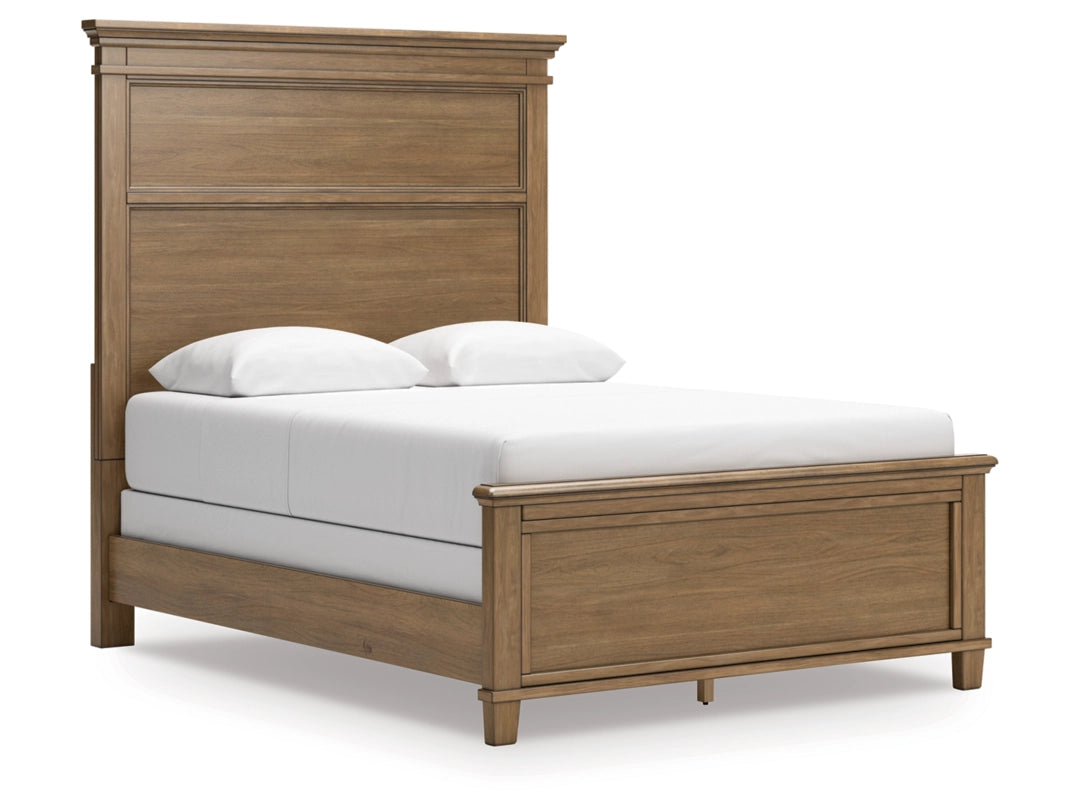 Bring timeless elegance into your bedroom with the Mylarken Queen Panel Bed. Designed with a substantial mansion-style profile and a warm light brown glazed finish, this centrepiece adds refined character to any modern or classic interior. Crafted from hardwood solids, birch veneer and MDF substrate, it delivers long-lasting durability and everyday functionality — built to last.