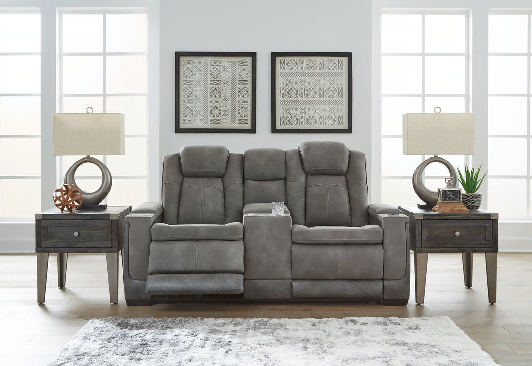 Meet the Next-Gen DuraPella Two-Tone Power Reclining Loveseat with Console – Slate, where modern luxury meets everyday durability. With a refined two-tone grey faux leather look, this dual-power recliner is designed to elevate your living room while delivering high-performance comfort and advanced tech integration.