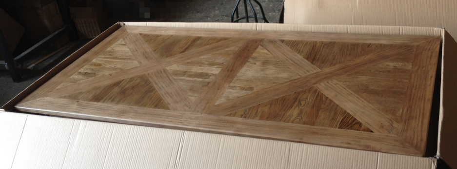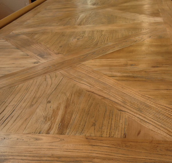 Elevate your dining experience with the Parquetry Dining Table, crafted from reclaimed elm timber. Its intricate parquetry design and rustic finish exude timeless charm.