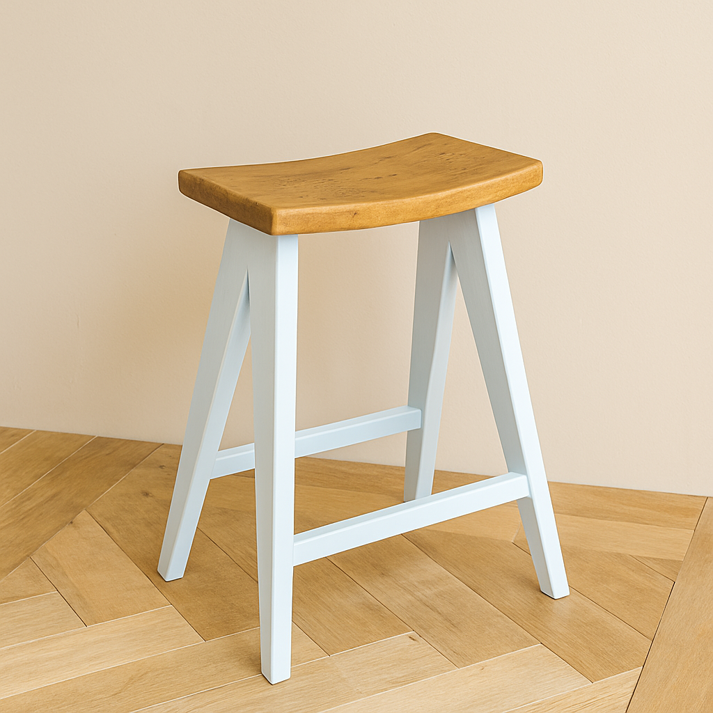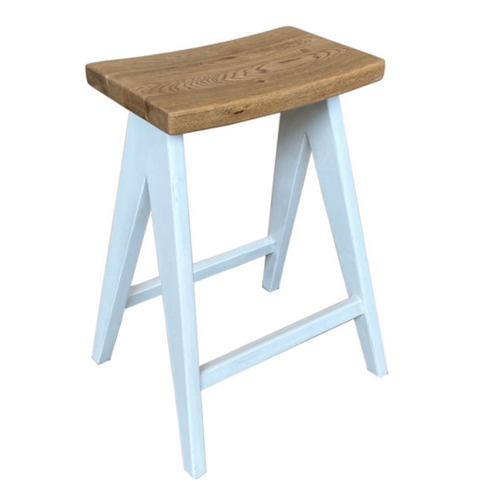 Portland 65cm Stool – Oak Top & White Legs (Rubbed Down Finish)