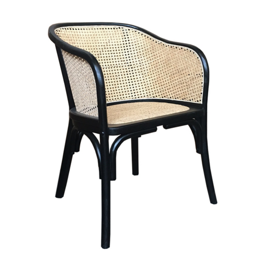 Introduce artisan charm and enduring style to your space with the Portland Tub Chair – Black. Featuring a solid elmwood frame in a bold black finish and open-weave natural rattan on the back and seat, this chair perfectly blends structure and lightness.
