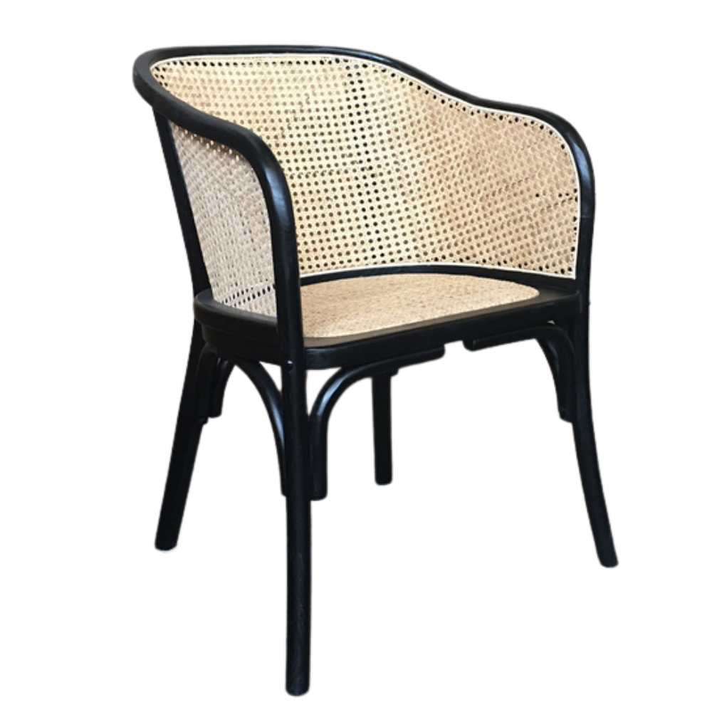 Bring rustic charm and modern functionality to your space with the Portland Tub Chair. Crafted with a sleek black elmwood frame and hand-woven rattan, this chair offers timeless character and durability. Its curved back and natural rattan seat ensure comfort and style in any room.