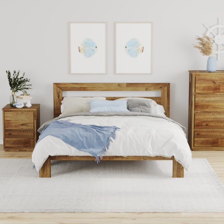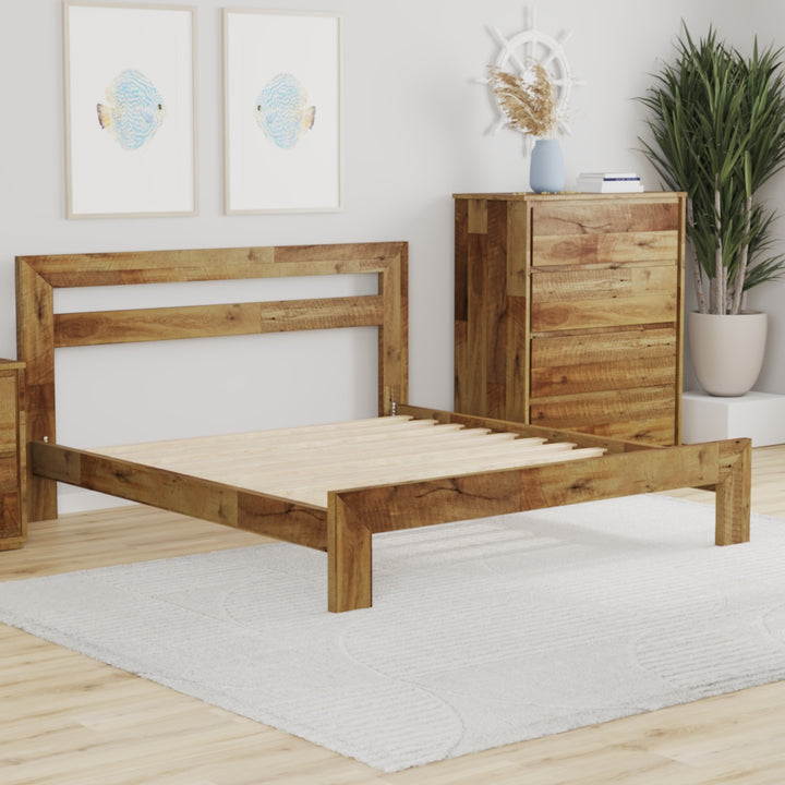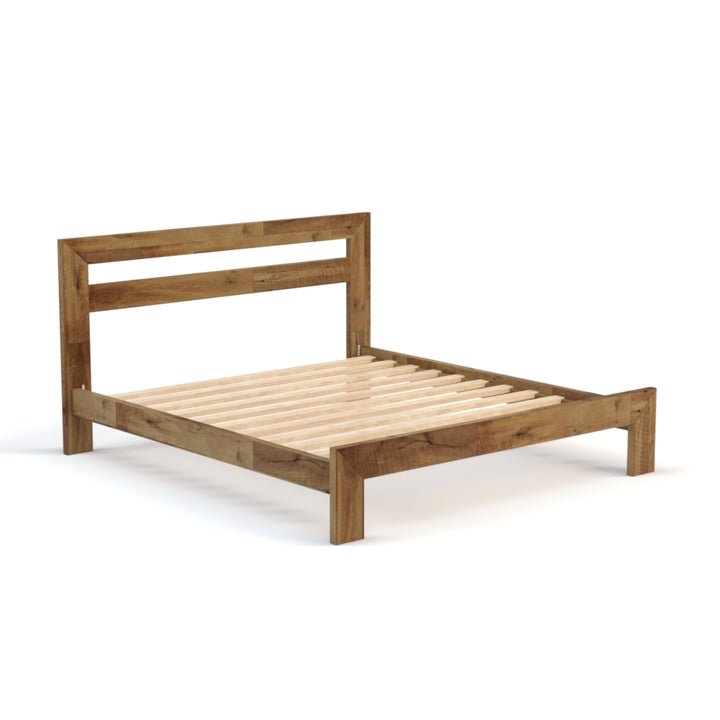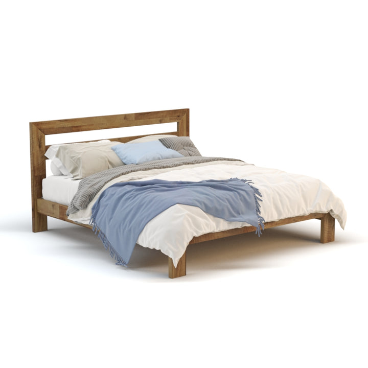 Crafted from solid new Bunya Timber with a reclaimed finish, the Post & Rail Bed brings a touch of rustic charm and robust durability to your bedroom. The headboard, standing at 950mm high, adds a striking yet understated feature to the bed’s design.