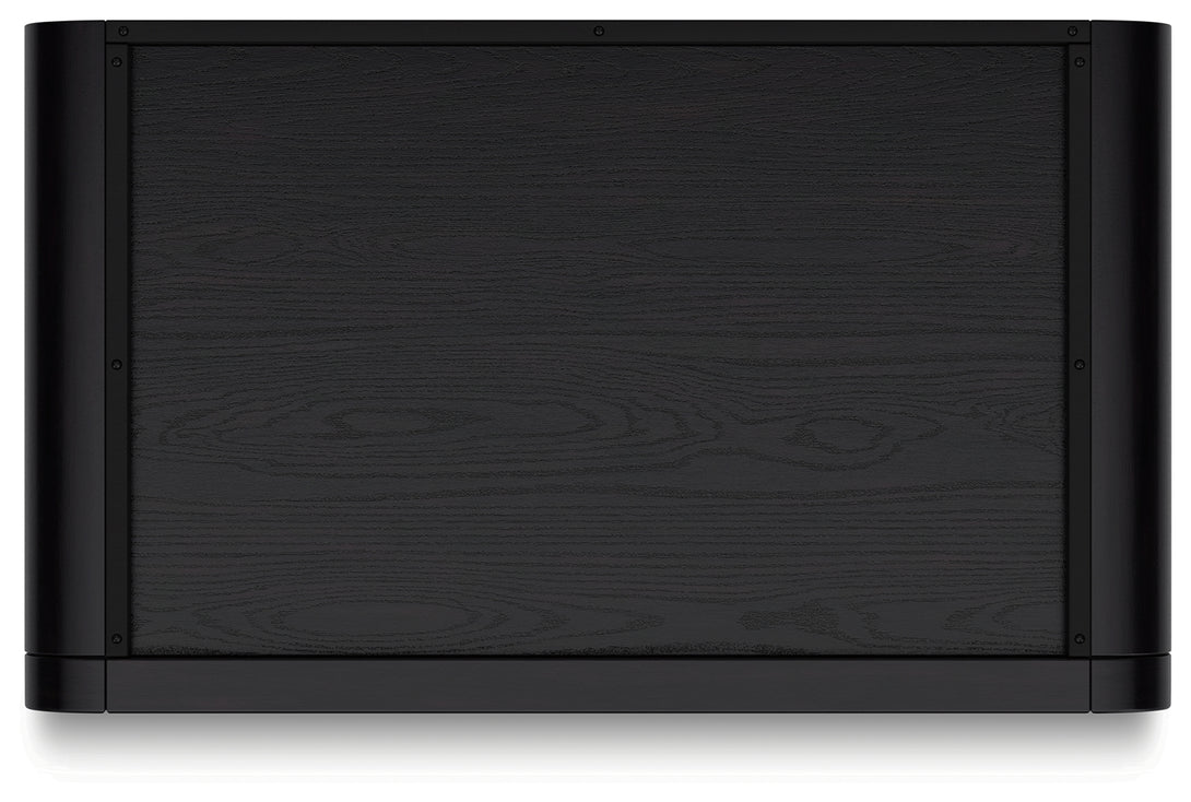 Inspired by the elegance of art deco design, the Rowanbeck Bookcase delivers bold style and practical storage. Featuring a sculpted curved silhouette, this bookcase is crafted from hardwood solids, ash veneer, and MDF substrate, finished in rich layered black to accentuate the textured wood grain.
