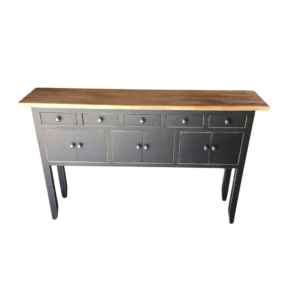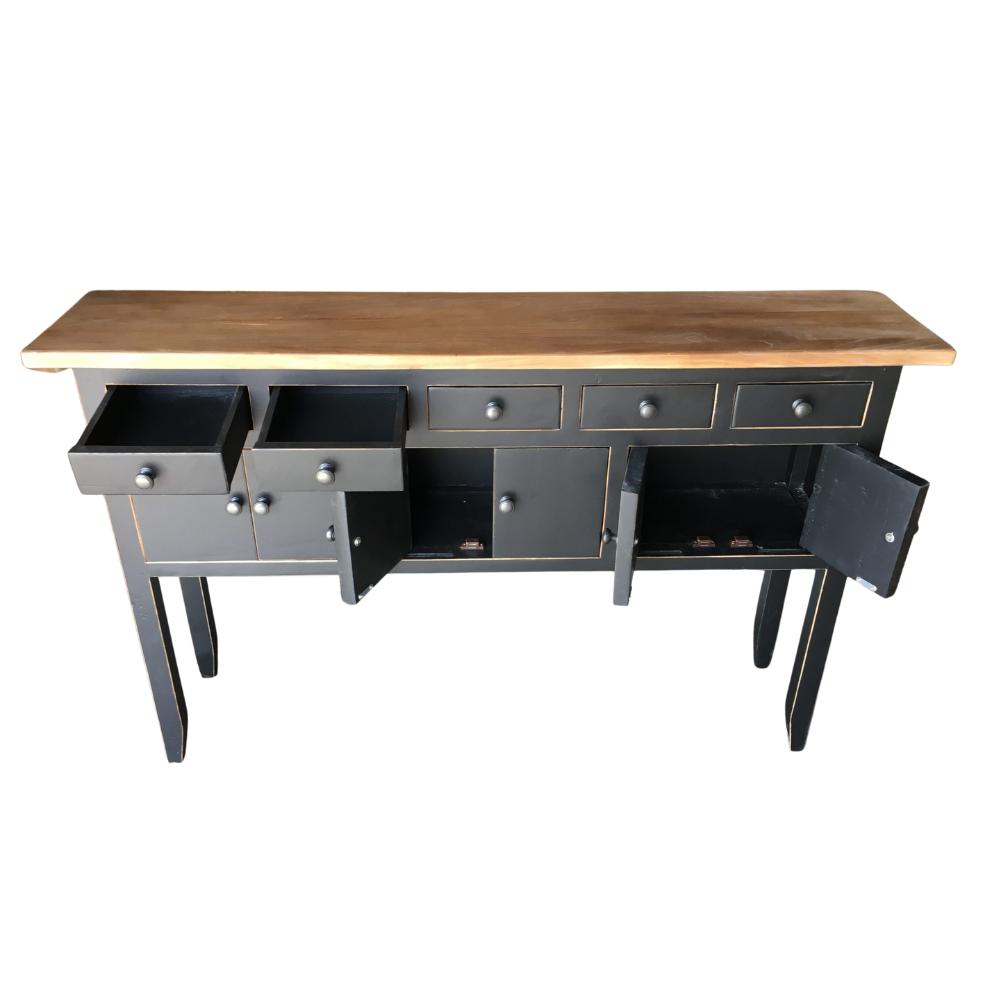 With five smooth-opening upper drawers and six lower cabinet doors, this hall table keeps your home organised while maintaining a clean and refined look.