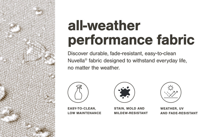 • Nuvella+ is an outdoor fabric that can be cleaned and offers enhanced UV resistance