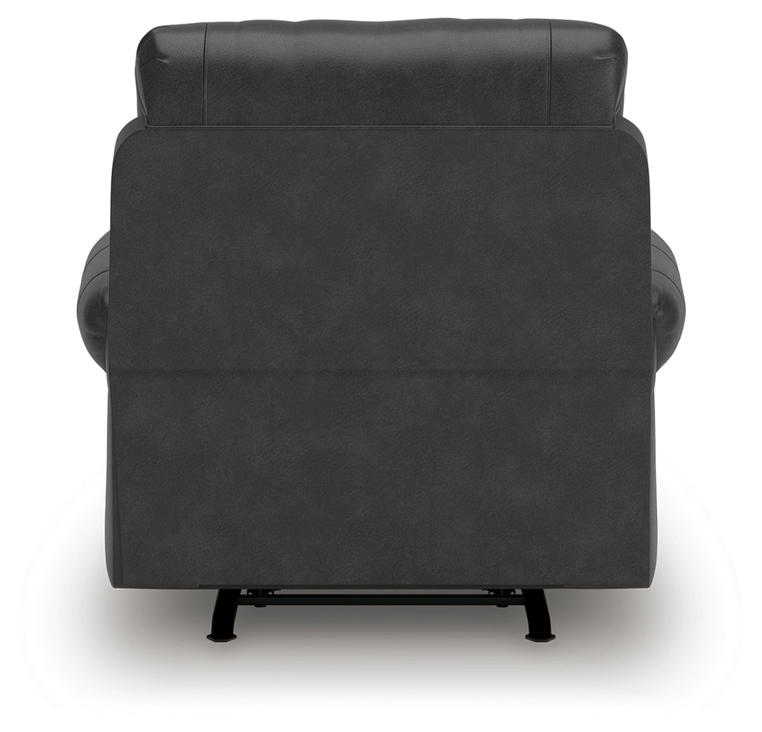 Sink into timeless comfort with the Shadsburne swivel glider recliner. Upholstered in a rustic yet refined granite faux leather-look fabric, this recliner features traditional rolled arms with nailhead trim, turned faux wood legs, and smooth motion capabilities. Enjoy 360-degree swivel, gentle rocking, and a relaxing recline—all in one stylish piece built for durability and support.
