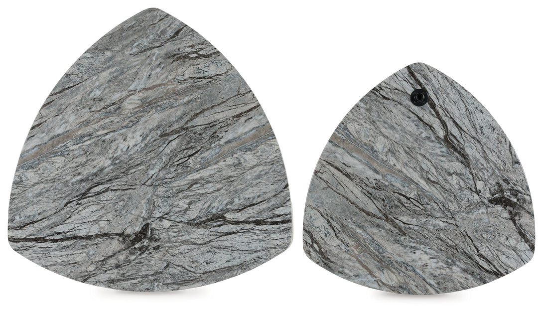 Striking in form and practical in design, the Surmour stacked coffee table set brings modern elegance to your living room. The top showcases a grey faux marble laminate while the cantilevered base features a weathered grey wood grain finish. Perfect for those who value both aesthetics and functionality, the integrated pivoting lower table easily extends or tucks away, giving you flexibility in your space.