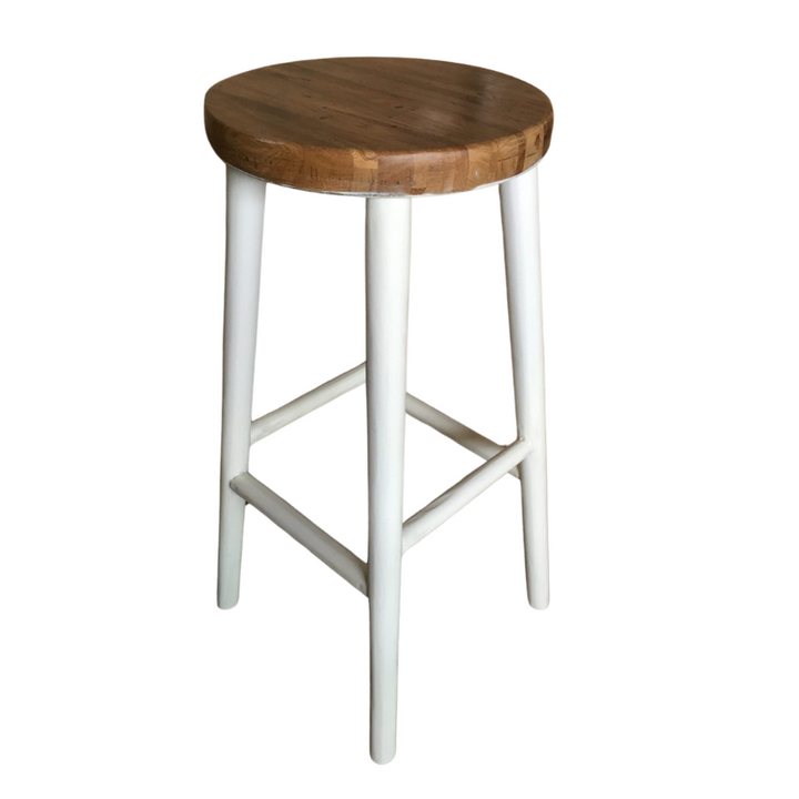 Enhance your space with the Tallawong 65cm Bar Stool. Crafted from solid oakwood, this elegant stool features a rich natural wood seat paired with crisp white legs for a fresh, coastal-inspired look. Designed for durability and stability, its reinforced footrests and sturdy construction make it a stylish and functional choice for kitchens, bars, or dining areas.