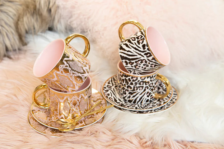 Entertain in style with this luxury 24 carat gold embellished Teacup by Australian Artist and Designer Cristina Re. For lovers of decorative animal prints, this luxurious handmade collection will take you on a journey into the wild Safari.