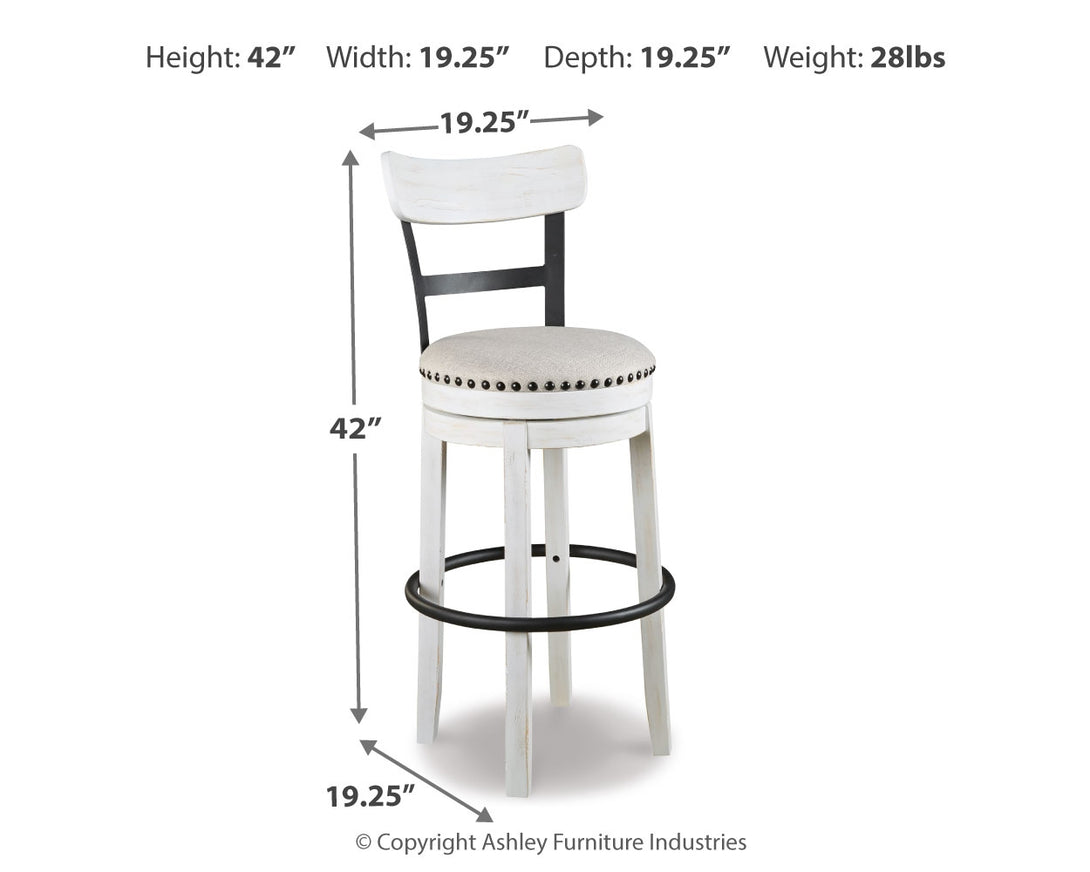 Add rustic-industrial character to your home with the Valebeck White Swivel Bar Stool. The distressed vintage white finish, paired with sturdy wood and metal construction, creates a stylish contrast that suits both farmhouse and contemporary interiors.
