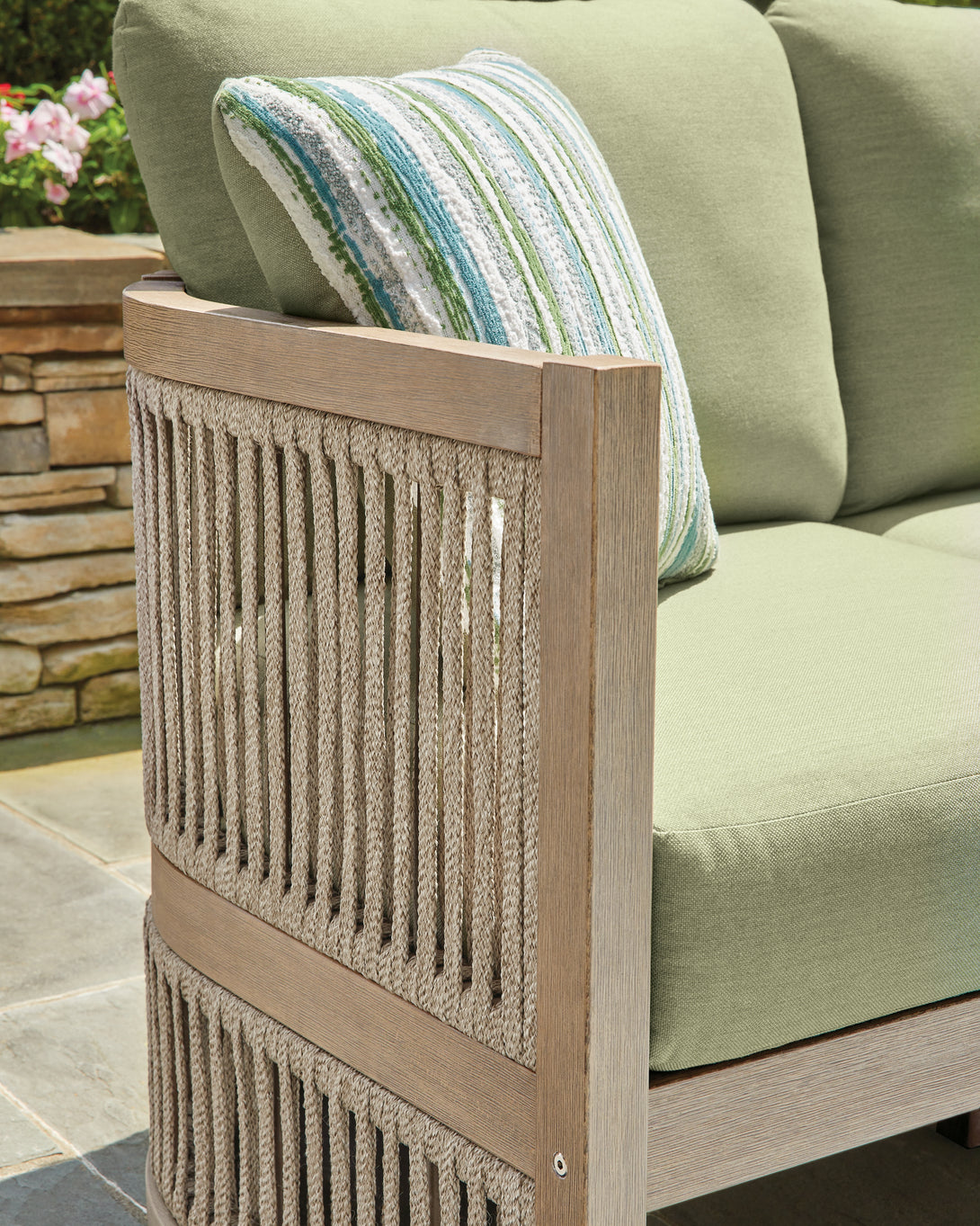 Round out your outdoor living space with the natural beauty and durability of the Vision Lane Outdoor Sofa. Perfectly sized for three, this sofa blends timeless design with lasting comfort, making it an ideal addition to your patio, deck, or poolside.