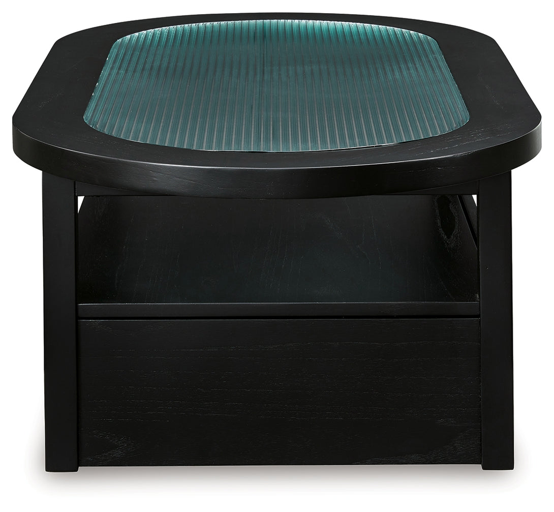 Winbardi Black Coffee Table with Storage & Fluted Glass Top